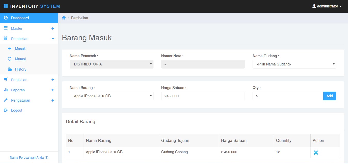 Inventory Mobista adalah software inventory management yang berfungsi untuk memantau, mencatat, dan mengontrol stok barang secara real-time. Cocok digunakan oleh toko retail, distributor, grosir, maupun bisnis online yang membutuhkan sistem pengelolaan barang masuk dan keluar secara rapi dan terstruktur.